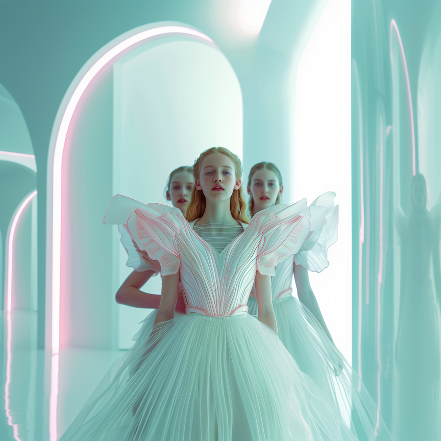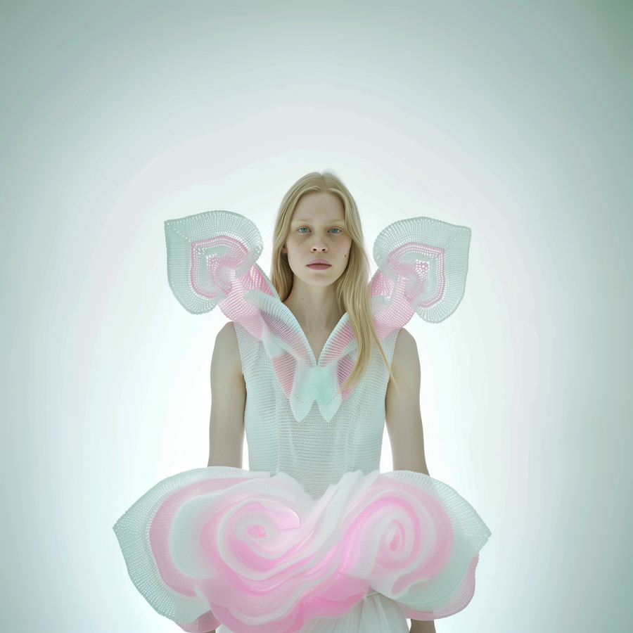 As an IA Artist, Daria blends her Slavic heritage with a love for French culture to craft original, captivating visuals. Inspired by the northern lights and Nordic myths, she uses AI to create fashion imagery that defies the conventional. Her work features supernatural textures, iridescent colors, and light-painting makeup, all within a futuristic fashion realm where bears cuddle up and flowers morph into chic accessories. Daria’s enchanting surrealism and technical prowess push the limits of art, turning each piece into a sensory, dreamlike journey.